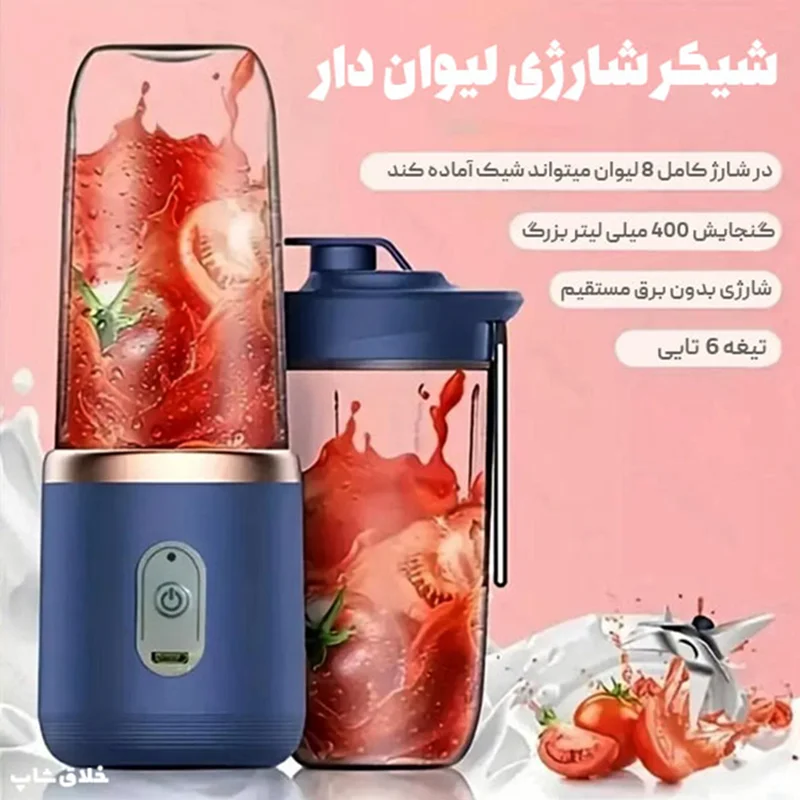 مخلوط کن شارژی یک وسیله سبک و کاربردی ، برای لذت بردن از طعم میوه هاست ویژگی اصلی این محصول قابل حمل بودن آن است با این ویژگی میتوانید در هر مکان و هر زمانی آبمیوه طبیعی و تازه مورد علاقه خود را بنوشید همچنین مخلوط کن شارژی به راحتی قابل شستشو است و بعد از هر بار استفاده و تنها با داشتن مقداری آب تمیز میشود ، مخلوط کن شارژی قابل حمل مخصوص مخلوط کردن میوه های نرم ، پودر بدنسازی و سایر مواد غذایی نرم می باشد ، علاوه بر میوه ها و سبزیجات ، انواع دانه ها و خشکبار کوچک مانند : پسته ، بادام ، فندق و … نیز توسط این محصول آسیاب میشود