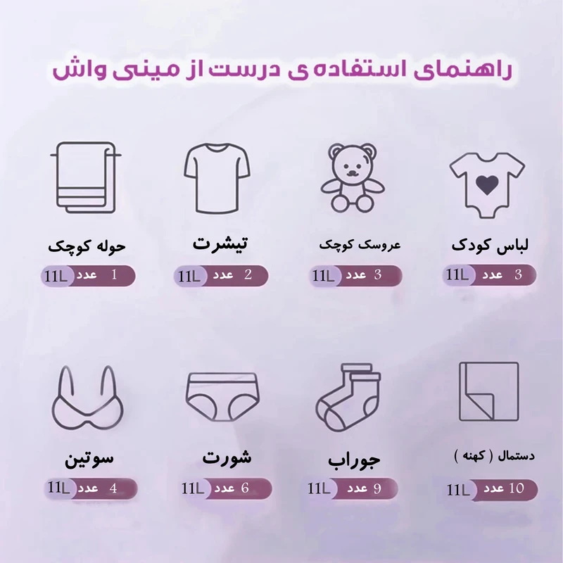 مینی واش پرتابل دستگاه لباسشویی کوچکی است که به این نیاز مشتریان پاسخ می دهد و همچنین برای افرادی که تنها زندگی میکنند یا در اقامتگاه های موقتی چون خوابگاه های دانشجویی ساکن هستند ، مناسب است