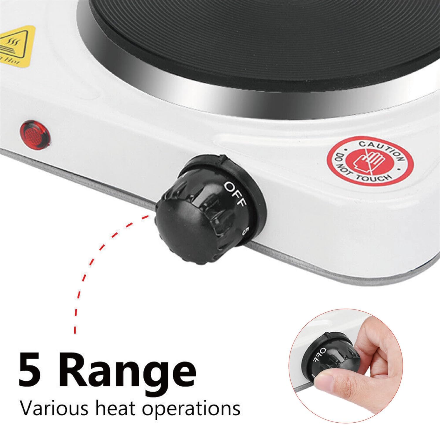 جنس بدنه فلزی با پوشش سفید مقاوم به حرارت ، قطر صفحه اصلی 15سانتیمتر ، چراغ نمایشگر دارد ، 5 درجه یا لول حرارتی دارد